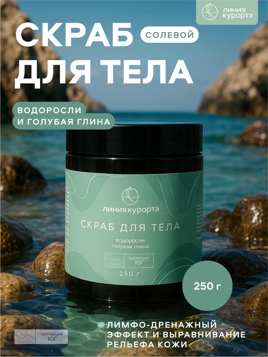 Скраб с голубой глиной и водорослями глубоко очищает кожу, стимулирует обновление клеток, обладает мощным тонизирующим эффектом. Масло виноградной косточки смягчает и повышает эластичность кожи. Спирулина, ламинария и фукус оказывают детокс-преображение, ускоряют обмен вещества, разглаживают микрорельеф и обеспечивают лимфодренажный эффект. Соляной скраб богат минеральным комплексом, который при использовании хорошо проникает в кожу, насыщая её. Свежий аромат подарит ощущение приятной прохлады и вдохновит на путешествие к морскому побережью.